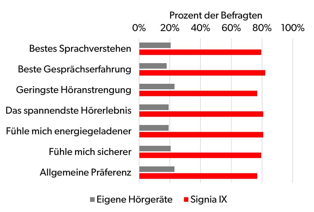 Das Ergebnis: IX Hörgeräte zeigten im Vergleich einen deutlichen Vorteil.