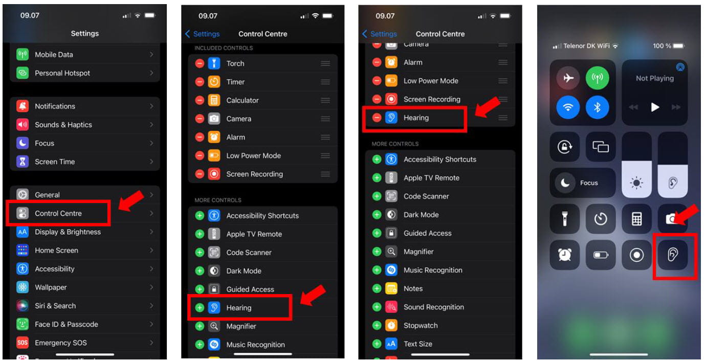 The Signia app is not needed to use HandsFree, all settings are adjusted via iOS menus. For convenience it might be helpful to the wearer to add the HandsFree control to the Control Center of this phone (Figure 2).