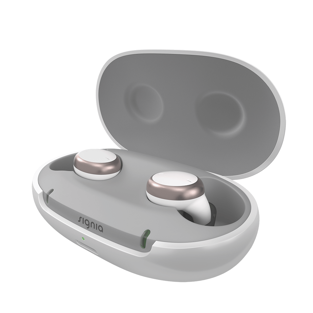 Signia Active Pro combine une aide auditive de niveau supérieur et conviviale, similaire aux produits audio de grande consommation haut de gamme, et des technologies audiologiques dignes des aides auditives les plus perfectionnées. En voici quelques-unes : la technologie Signia Xperience YourSound, qui offre une intelligibilité supérieure dans les environnements bruyants ; la connectivité Bluetooth, pour la transmission de la musique et des appels téléphoniques en cours de déplacement ; et la capacité de recharge nomade de la batterie lithium-ion, pour une flexibilité et une indépendance totales grâce au chargeur Signia Active de poche.