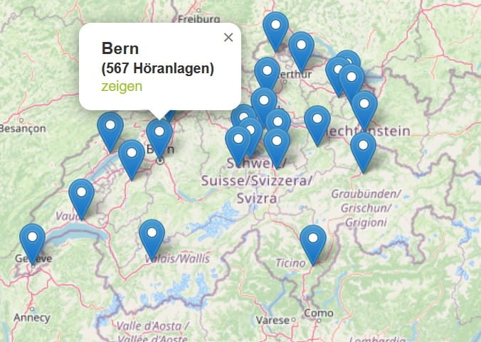 Le répertoire est disponible en allemand, français, italien et anglais et aide les personnes à trouver des lieux accessibles. Qu'il s'agisse d'une salle de conférence, d'un théâtre, d'une église, d'un cinéma ou d'une salle de réunion, vous trouverez ici les lieux équipés d'un système d'écoute inductif. Vous pouvez ainsi recevoir le son directement avec vos appareils auditifs et implants cochléaires, sans réverbération ni bruits parasites gênants. Sur www.hoeranlagen.ch, vous trouverez une liste complète des bâtiments publics équipés de systèmes d'aide à l'écoute Auracast. Il vous suffit de saisir un mot-clé ou une adresse dans le champ de recherche pour que le répertoire vous affiche les lieux correspondants. Le répertoire en ligne des systèmes d'écoute fournit des informations détaillées sur l'utilisation dans chaque lieu ainsi que des plans des salles qui indiquent visuellement les zones de meilleure réception.A