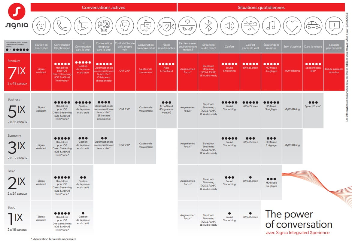 A l'aide de cet outil de consultation, vous pouvez montrer à vos clients un aperçu des différentes caractéristiques et bénéfices des différents niveaux de performance de Signia Integrated Xperience.