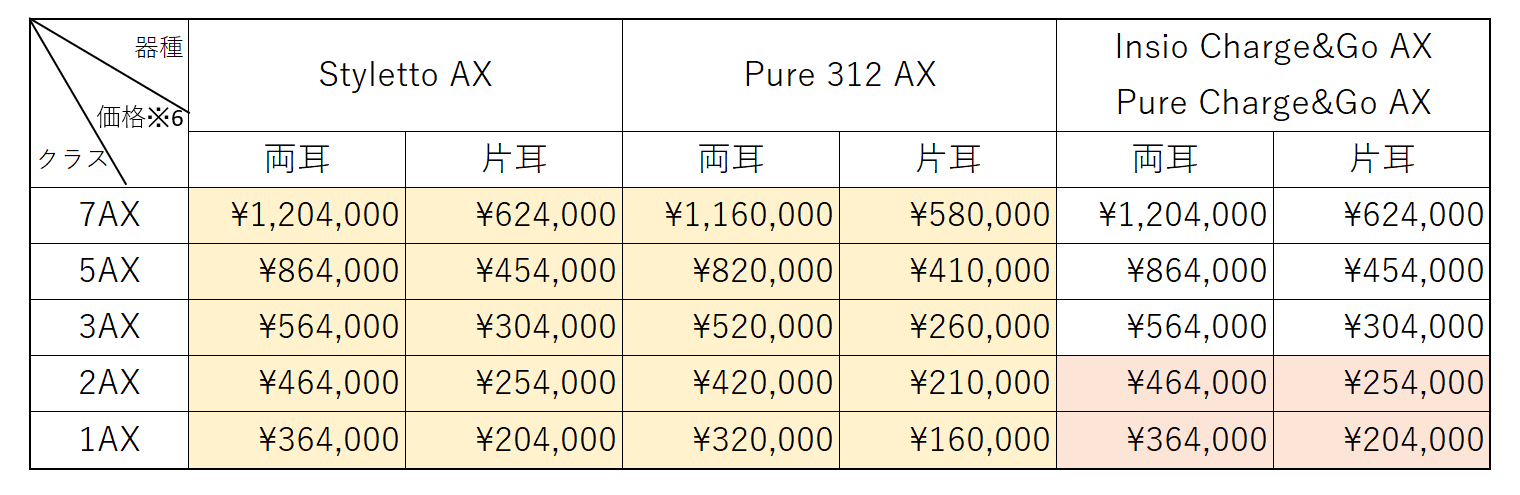 ※6 掲載価格は希望小売価格です。充電式は補聴器本体(非課税)、充電器1台¥44,000(課税・税込)を一式にした価格です