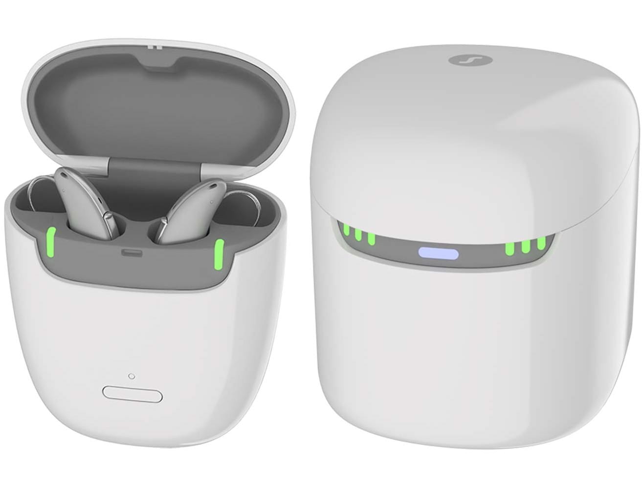 外出や旅行を楽しむ人、出張が多い人にお勧め。名前の通り「持ち運ぶ」ことができるこのコンパクトな充電器にはバッテリーが内蔵されています。充電ケースがフル充電なら、電源コード無しで補聴器2台を4回フル充電できます。