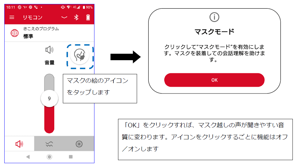 マスクの声をさらにしっかり聞きたい場合には・・・Signia app(シグニアアプリ)