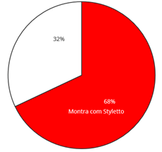 Figura 4 – Os respondentes foram encorajados a escolherem uma ou nenhuma das opções apresentadas em duas etapas distintas da pesquisa. O Styletto só foi uma opção na segunda etapa. As imagens mostram o percentual de escolha de cada uma das opções quando os respondentes tiveram que escolher uma delas ou nenhuma delas.